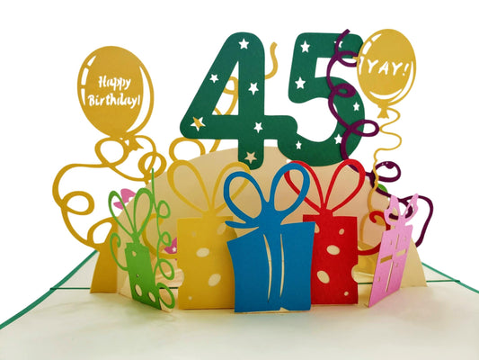 Happy 45th Birthday With Lots of Presents 3D Pop Up Greeting Card