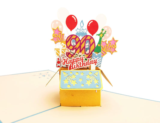 Happy 90th Birthday Blue Party Box 3D Pop Up Greeting Card