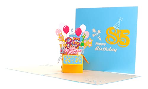 Happy 85th Birthday Blue Party Box 3D Pop Up Greeting Card