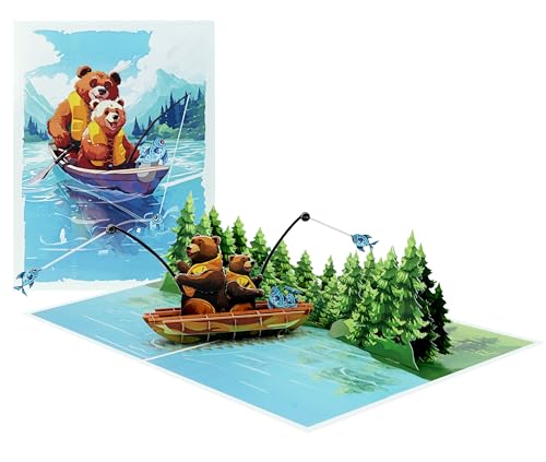Dad's Lake Escape: Bear Family Fishing Trip 3D Pop Up Card With Envelope