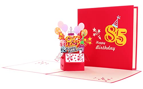 Happy 85th Birthday Red Party Box 3D Pop Up Greeting Card