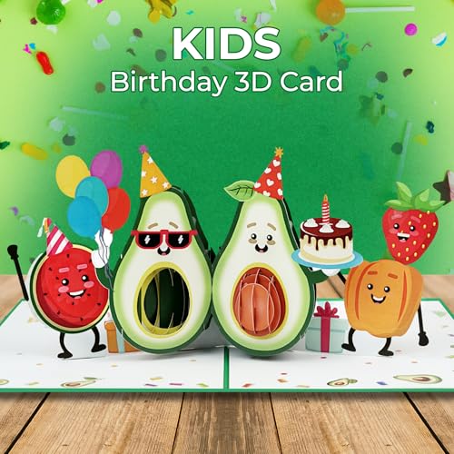 Avocado Birthday Party Pop-Up Card – 3D Greeting With Notecard and Envelope