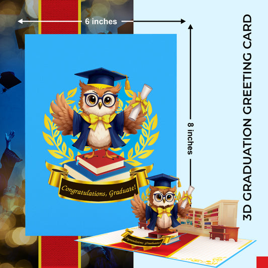 Wise Owl Graduation Pop-Up Card – Academic 3D Greeting with Cap and Diploma