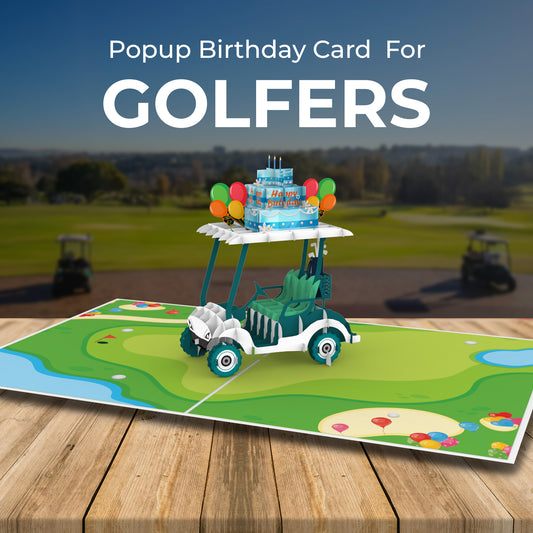 Hole-in-One Golf Cart 3D Pop Up Card, 6"x8", Includes Notecard and Envelope