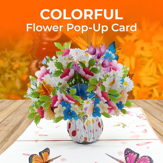 Flower Vase Magic Pop Up Card – 3D Floral Bouquet Greeting with Butterflies, Envelope Included