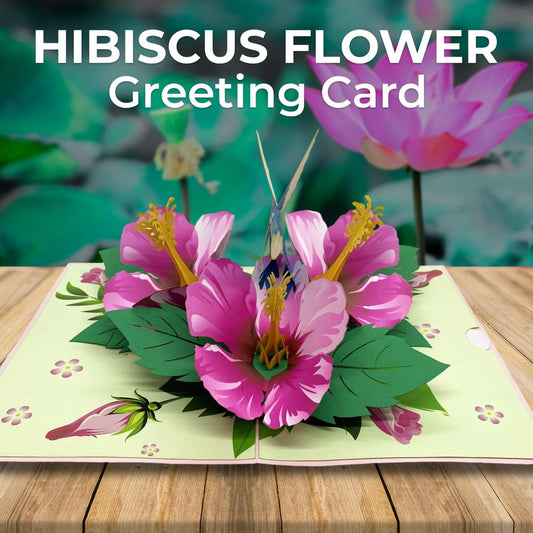Hibiscus Blue Hummingbird Greeting Pop Up Card – Stunning Pop-Up Floral Gift with Envelope