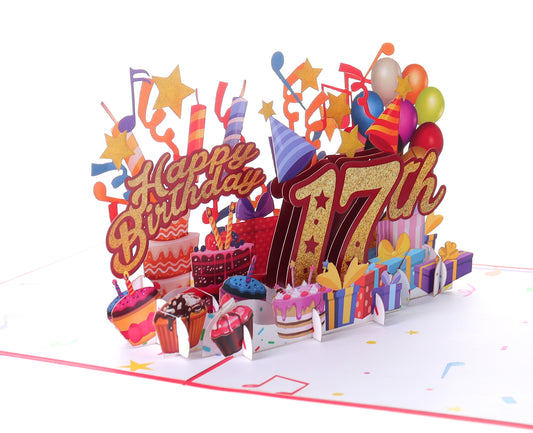 Happy 17th Red Birthday 3D Pop Up Greeting Card