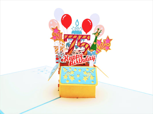 Happy 75th Red Birthday Party Box 3D Pop Up Greeting Card