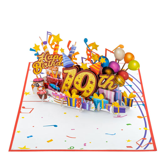 Happy 19th Red Birthday 3D Pop Up Greeting Card