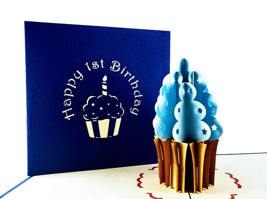 1st Blue Cupcake Birthday 3D Pop Up Greeting Card