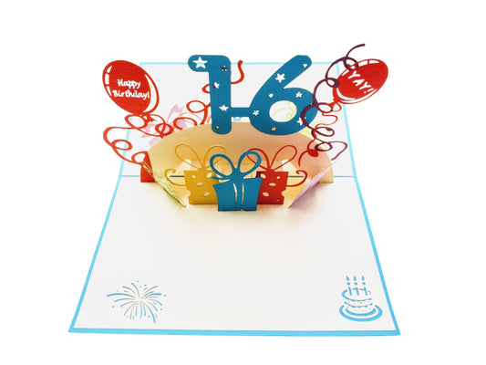 Happy 16th Birthday with Presents 3D Pop Up Greeting Card