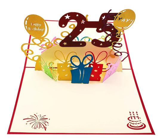 Happy 25th Birthday With Lots of Presents 3D Pop Up Card