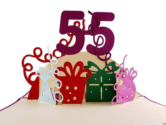 Happy 55th Birthday With Lots of Presents 3D Pop Up Greeting Card