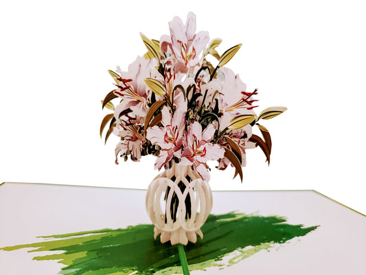 Awesome White Lilies Bouquet 3D Pop Up Greeting Card
