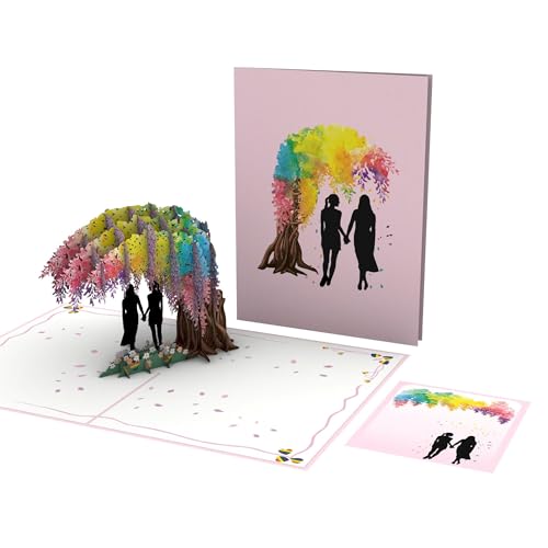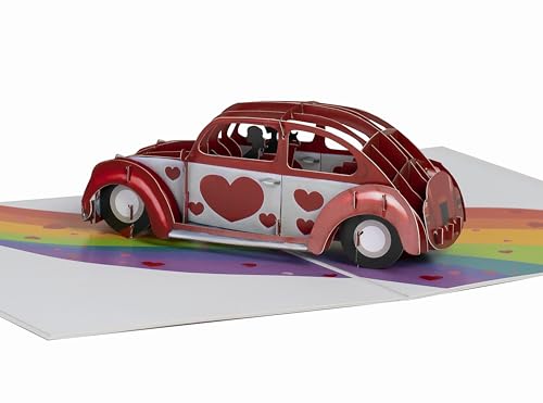 Red Lesbian Rainbow Love Car 3D Pop Up Greeting Card
