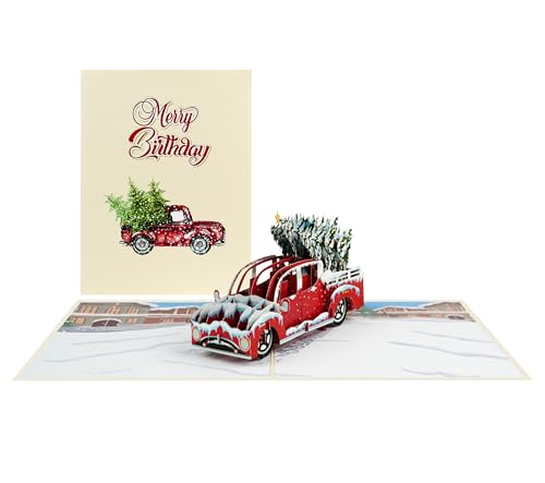 Christmas Tree Birthday Adventure 3D Pop Up Card - Holiday Bday Greeting with Envelope