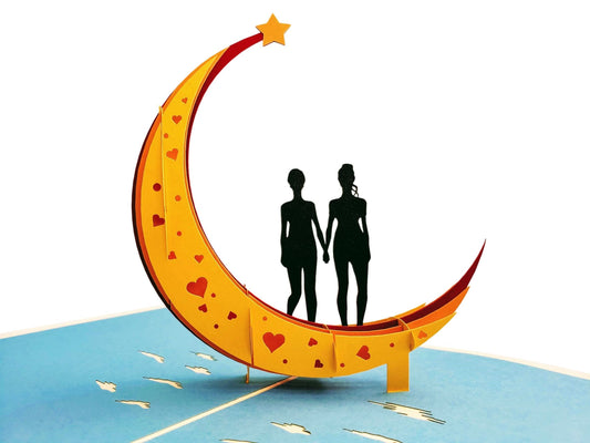 Love You To The Moon And Back Lesbian Couple 3D Pop Up Greeting Card
