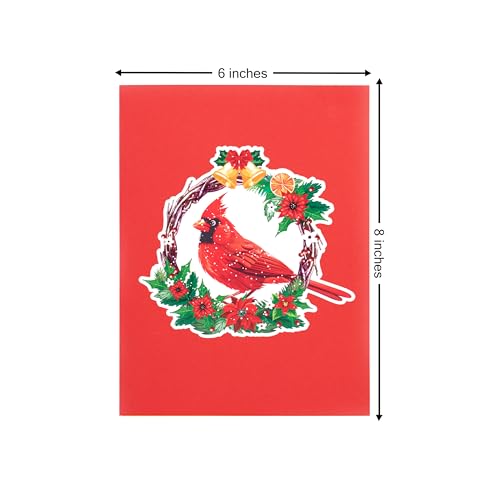 Red Cardinal Christmas Wreath 3D Pop Up Card - Greeting with Envelope & Notecard