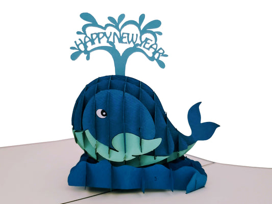 Blue Whale Happy New Year 3D Pop Up Greeting Card