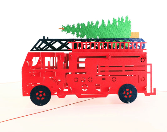 Fire Truck And Christmas Tree 3D Pop Up Greeting Card