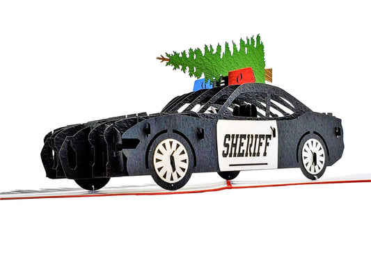 Sheriff Cruiser And Christmas Tree 3D Pop Up Greeting Card