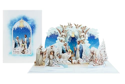 Angelic Nativity Blessings 3D Pop Up Card – Religious Christmas Greeting with Notecard & Envelope