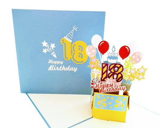 Happy 18th Birthday Blue Party Box 3D Pop Up Greeting Card