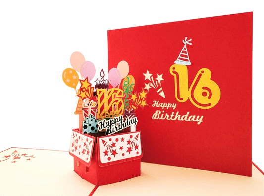 Happy 16th Birthday Red Party Box 3D Pop Up Greeting Card