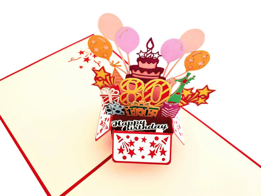 Happy 80th Birthday Red Party Box 3D Pop Up Greeting Card