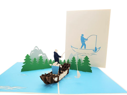 Mountain Lake Fishing 3D Pop Up Greeting Card