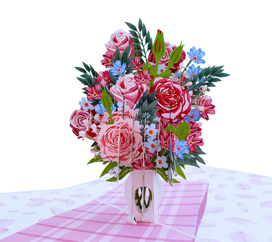 Springtime Roses Bouquet 3D Pop Up Greeting Card