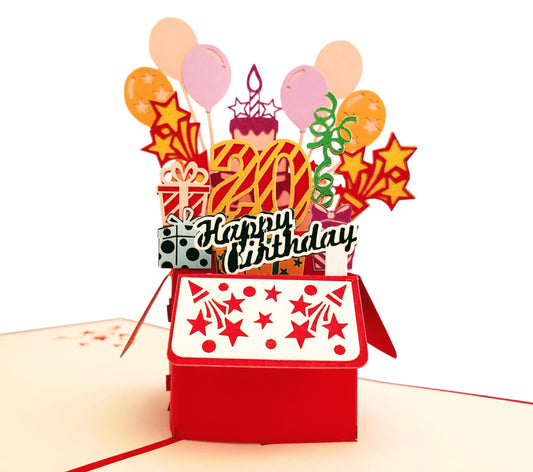 Happy 20th Birthday Red Party Box 3D Pop Up Greeting Card
