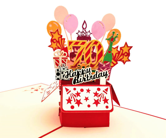 Happy 70th Birthday Red Party Box 3D Pop Up Greeting Card
